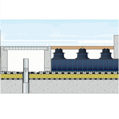 Modrá střecha DRENall s terasovým systémem PEDall nabízí využití nakládání dešťové vody, na které může být zároveň realizóvána terasa na teleskopických terčich v provedení keramiky, betonu, dřeva, nebo WPC.