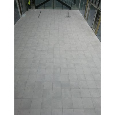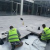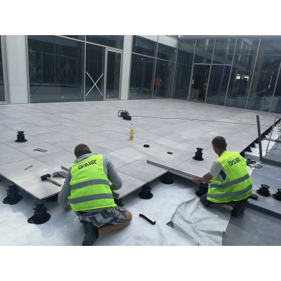 Technická podpora a realizace pokládky keramické dlažby na teleskopické terče PEDall. Terče až do výšky 50cm. Akce Telehouse, Praha- Dejvice