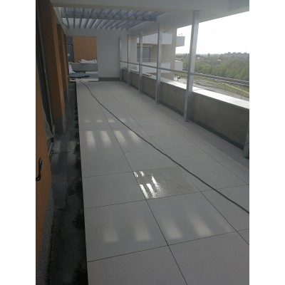 Realizace a technická podpora pokládky keramické dlažby na teleskopické terče PEDall. Akce Praha, BD Kamýk
