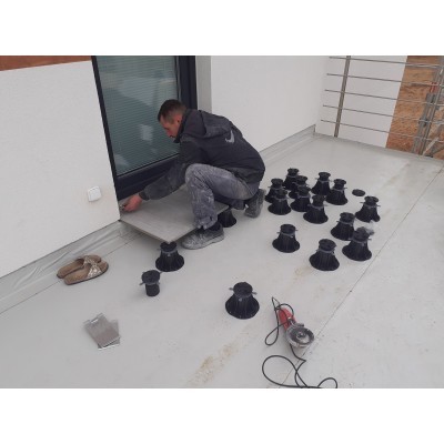 Dodávka a realizace teras + ukončení teras Al profily. Použití terčů PEDall CLASSIQ.