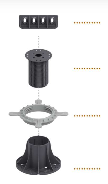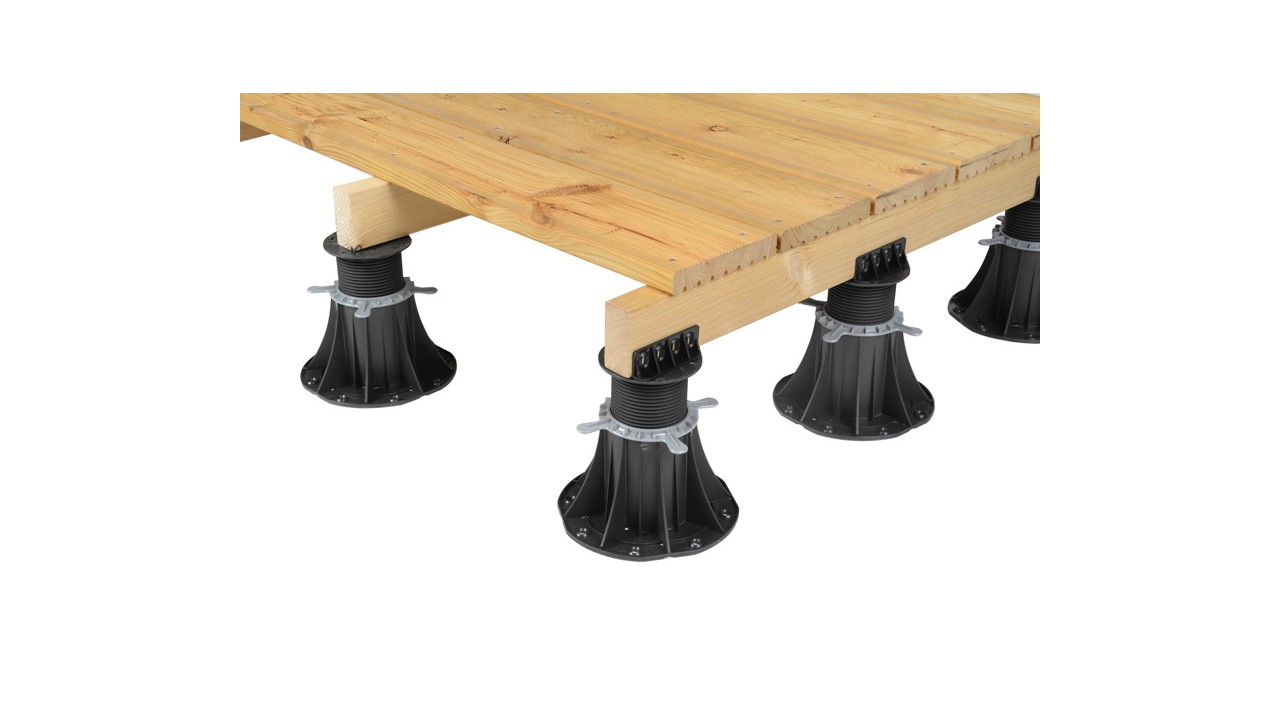 PEDall CLASSIQ WOOD je multifunkční teleskopický terč pod dřevěné terasy a WPC, který se dá jednoduše upravit na terč s kyvnou hlavou, nebo i na terč pro beton a keramiku.