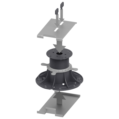 PEDall END se skládá z horního ukončovacího profilu (UP) a spodního profilu (DOWN) které se zkompletují a zadržují dlažbu proti posunu a zárověň zafixují pohledovou stranu z čela.